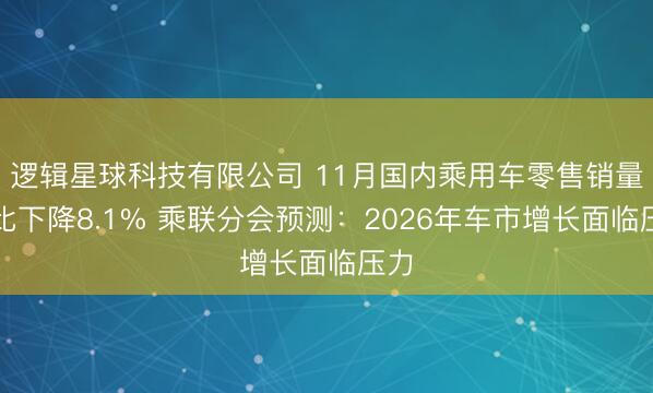 逻辑星球科技有限公司 11月国内乘用车零售销量同比下降8.1% 乘联分会预测:2026年车市增长面临压力