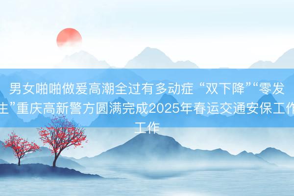 2025年春运启动以来,返乡流、探亲流、旅游流、货运流高位叠加,春节期间群众出行出游意愿强烈,重庆高新警方围绕防事故、保安全、促畅通总体目标,聚焦源头、路面、宣教持续发力,实现了交通事故总量、交通拥堵指数双下降,较大交通事故零发生。春运期间,辖区未发生长时间、长距离严重交通拥堵男女啪啪做爰高潮全过有多动症,有力确保了全区道路交通形势平稳有序。
