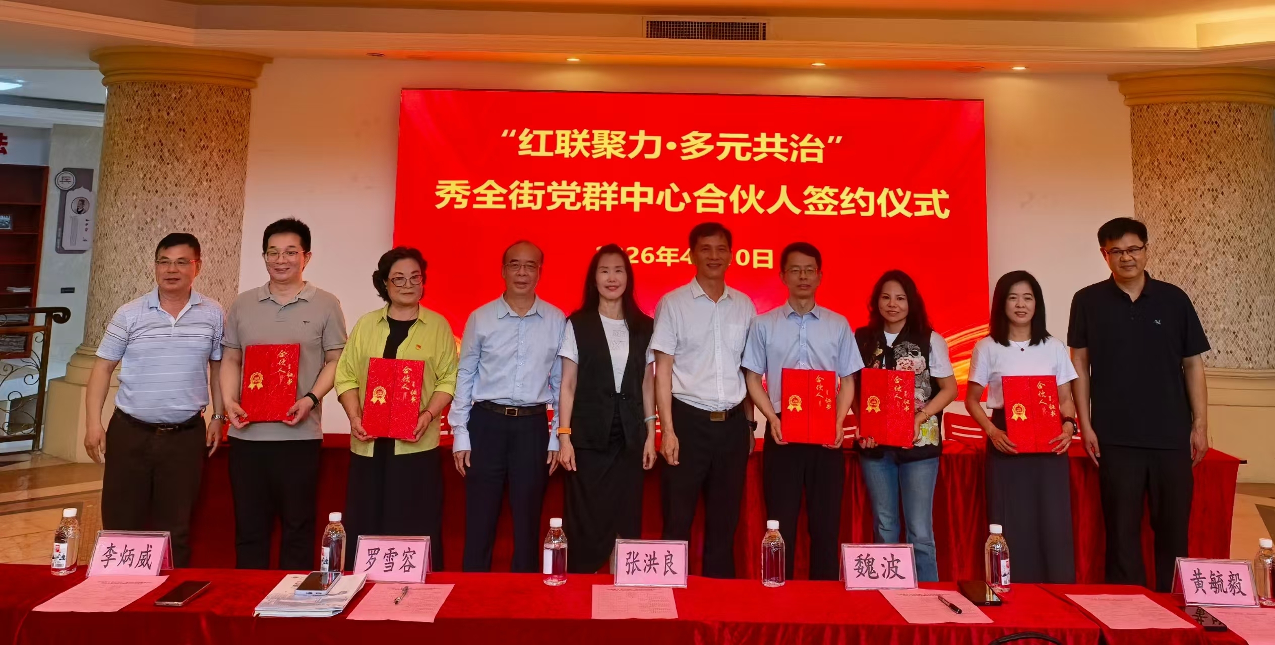 4月10日,在花都区委组织部、区委社会工作部指导下,秀全街开展以“红联聚力·多元共治”为主题的街党群服务中心合伙人签约仪式暨座谈活动,打破了社区治理“单打独斗”壁垒,整合社会资源,激活党建引领基层治理内生动力。